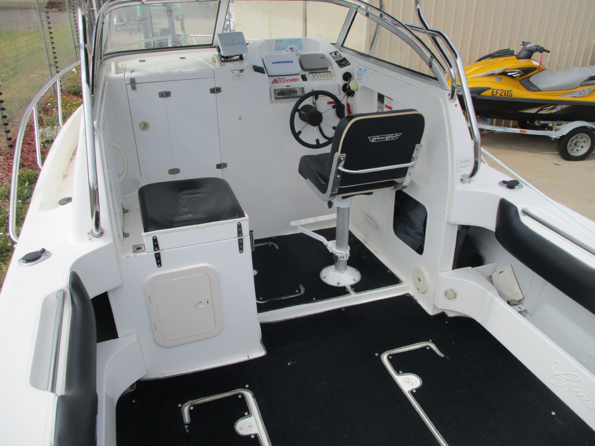 The package features a list of standard inclusions plus Bait Board, Lenco Trim Tabs, Stainless Steel bimini with Rod rack, Front and side clear, Lewar anchor winch GME sound system, Deckwash, Spare wheel , Twin battery system, Lowrance HDS Sounder/GPS and 107X sounder, Transom door and much more.