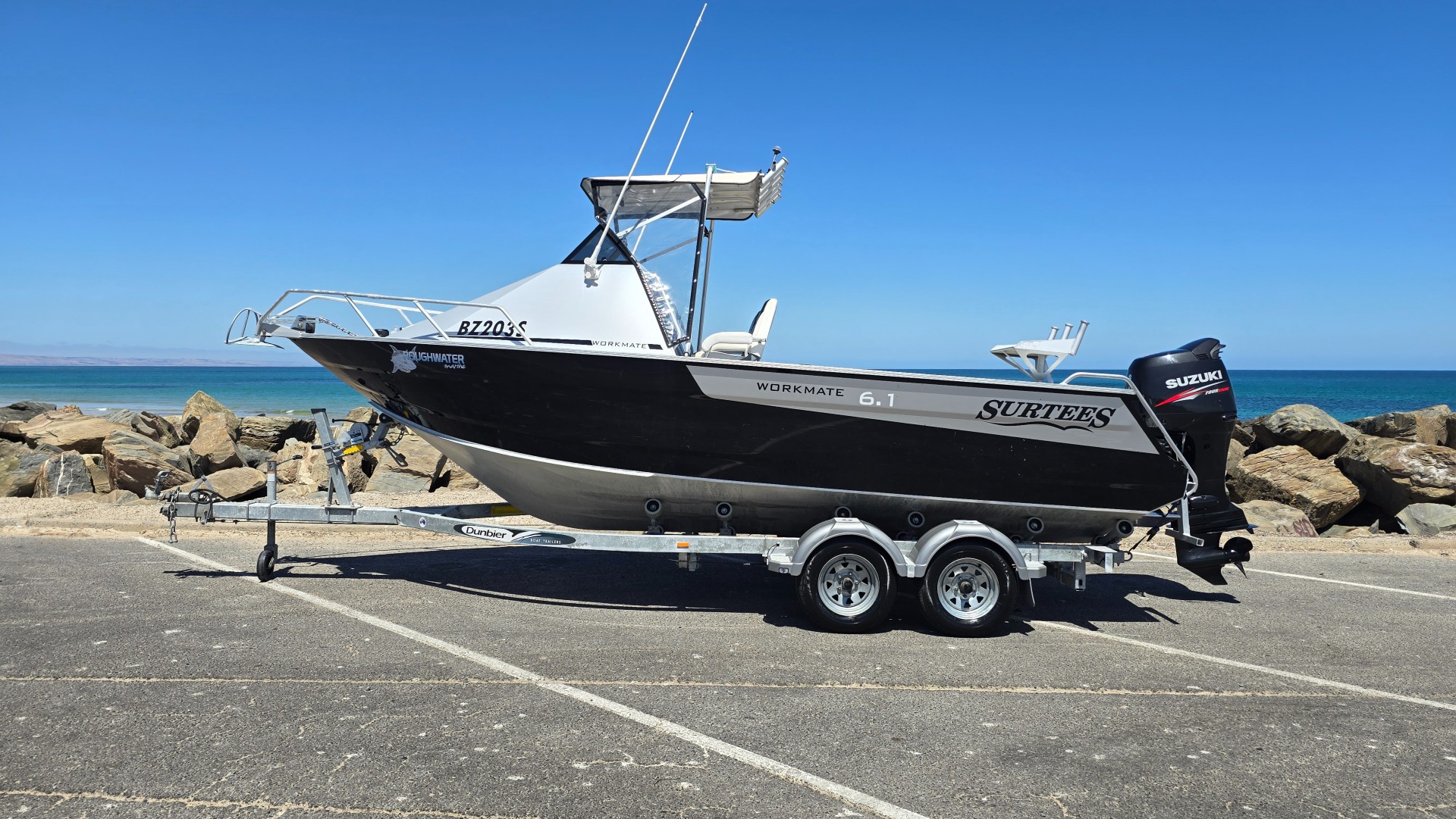 If you're searching for a proven offshore fishing boat, this 2011 Surtees 6.1 Workmate is a fantastic opportunity to own one of New Zealand’s most respected alloy fishing hulls. Known for their tough construction, excellent ride and unmatched stability, Surtees boats are a favourite among serious anglers across Australia and New Zealand. This Surtees 6.1 Workmate fishing boat is powered by a Suzuki 140hp 4-stroke outboard (2011) with approximately 600 hours, delivering strong performance, smooth operation and excellent fuel economy. Sitting on a 2-year-old Dunbier braked trailer, this is a reliable, easy-to-launch package ready for your next offshore adventure. This boat has been well used for its intended purpose and presents in good used condition. While it may show some cosmetic wear consistent with a hardworking fishing boat, it is mechanically sound, freshly serviced and ready to hit the water. Ideal for buyers looking for a practical offshore fishing platform rather than a showroom boat. Key Features & Equipment Suzuki 140hp 4-Stroke Outboard (2011) – approx. 600 hours Floodable keel ballast system for outstanding stability at rest Trim tabs for improved ride and performance Garmin ECHOMAP 95sv GPS / Sounder Stressfree anchor winch Foldable hardtop Deck wash system Bait board