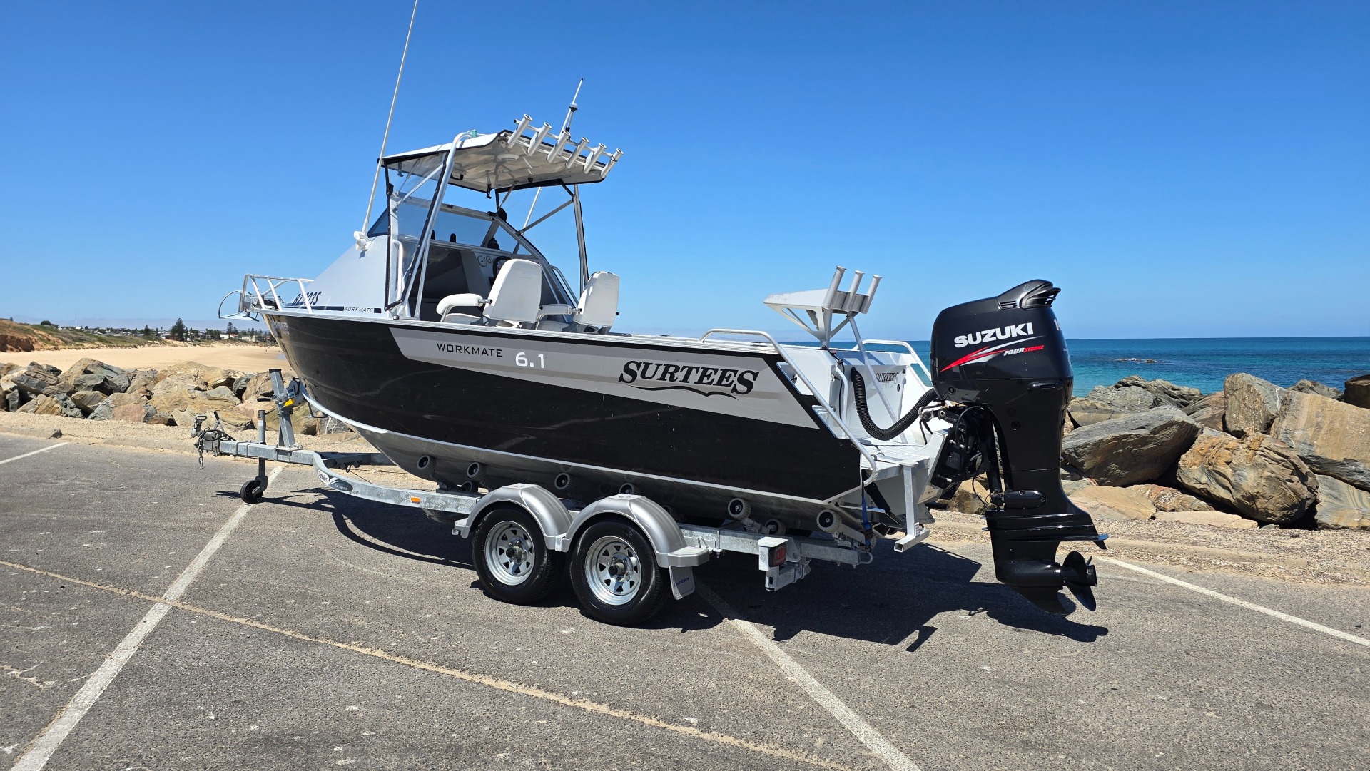 Sarca Anchor Fusion marine stereo 2-year-old Dunbier braked trailer The Surtees ballast keel system provides incredible stability when fishing and automatically drains when underway, giving the boat a soft and capable offshore ride. With its wide working deck and practical layout, the 6.1 Workmate is ideal for snapper fishing, offshore trips, diving and serious anglers who need space and durability. This Surtees 6.1 Workmate package has been freshly serviced and is ready to fish immediately. 📍 Available for viewing at Christies Beach Marine – Lonsdale SA As always at Christies Beach Marine, we can assist with boat finance, marine insurance and registration options (subject to approval) to make ownership simple and hassle-free.
